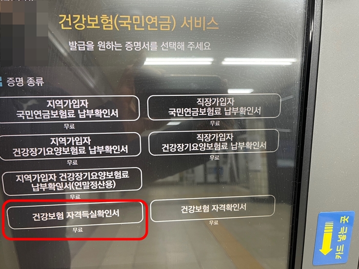 건강보험자격득실 확인서 무인 발급기 이용방법