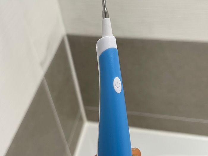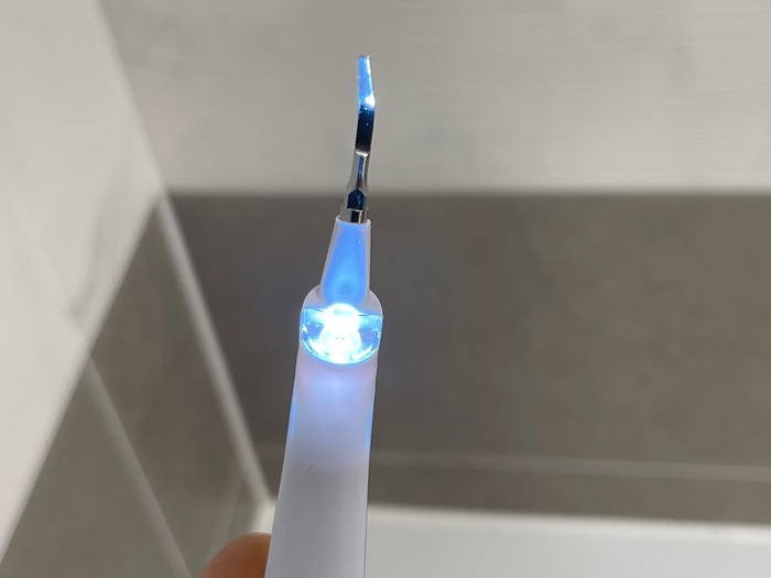 셀프 치아 세정기 기능은 버튼이 하나인데요 한번 누르면 LED나 켜지고 한 번 더 누르면 분당 18000회 음파 진동이 느껴지게 됩니다 시린 이라든지 약한 잇몸이라도 자기 자신이 하는 홈스케일링이라 무엇보다 안전하며 이가 시리지 않더라고요