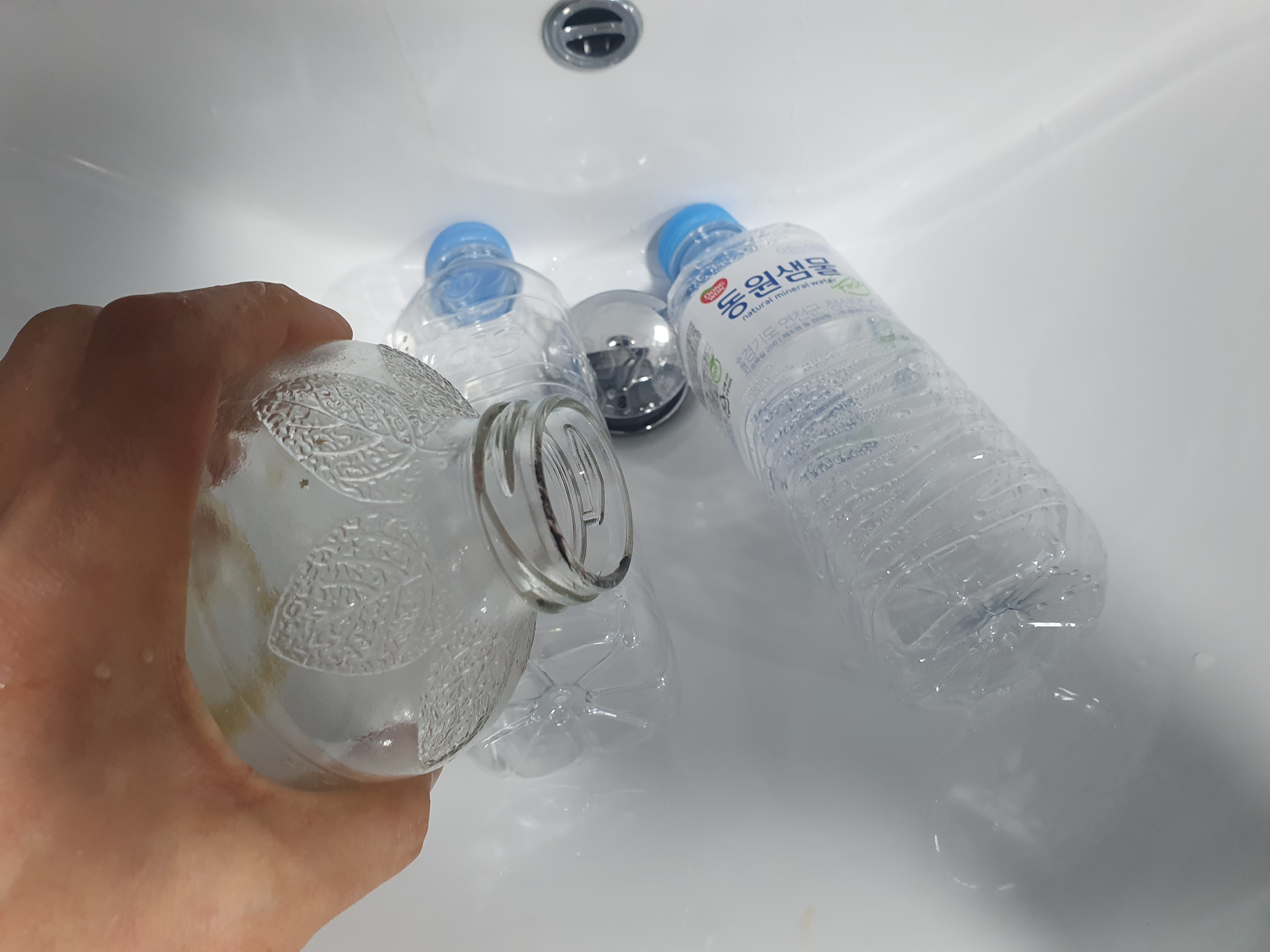 빗물을 좀 많이 받아놔서 작은 플라스틱