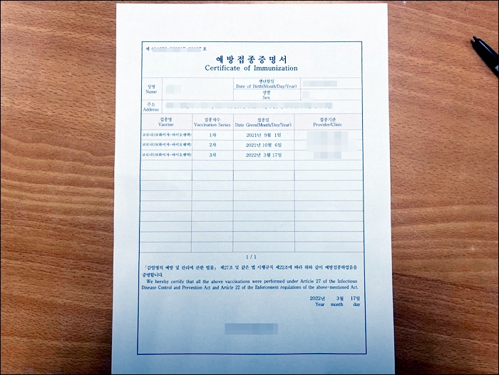 3차까지 맞으면 위 사진처럼 예방 접종 증명서가 발급이 되고 확진자랑 겹쳐도 음성으로 나올 시에는 자가격리가 면제를 가질 수 있습니다 하지만 정부의 지침이 앞으로 어떻게 바뀔지 모르겠지만 제가 3차 백신을 맞은 이유는 단지 생계를 꾸려나가려는 의지뿐이었습니다 화이자 접종 1차나 2차까지 저의 기록을 보면은 오한이나 발열 증상이 미미한 정도로 긋쳤습니다