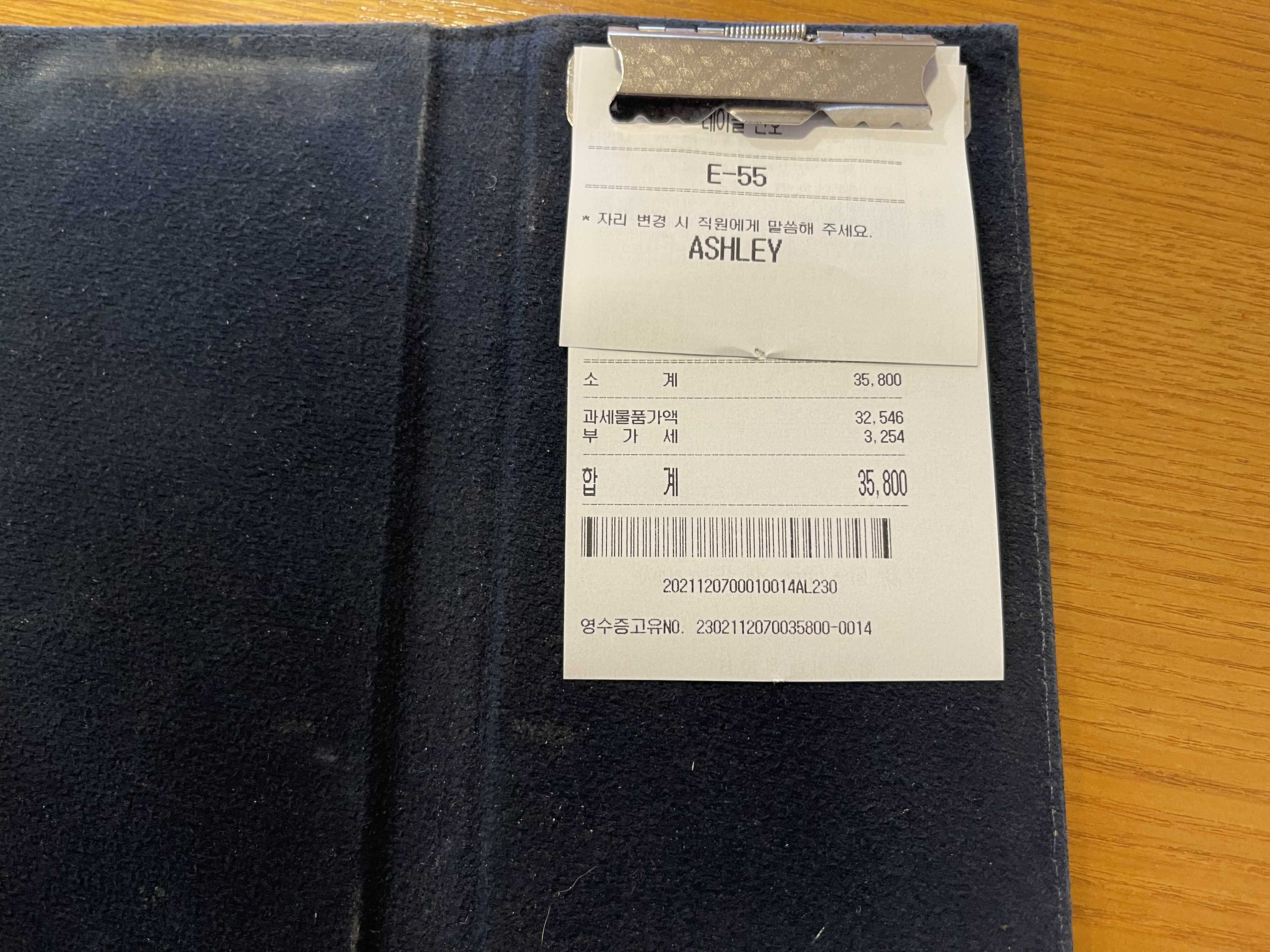 자리 배정과 애슐리 사용금액 영수증을 미리 받았어요