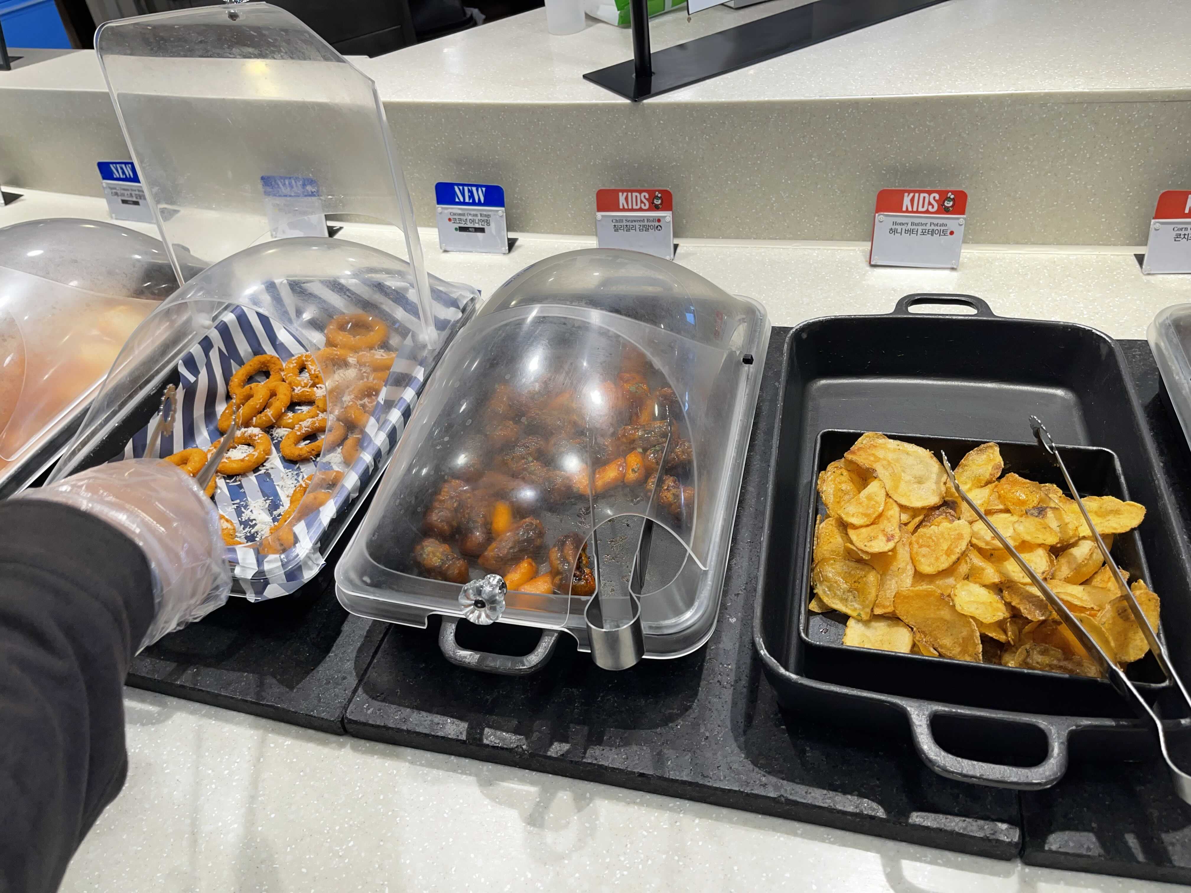코코넛 아니언링, 칠리칠리 김말이, 허니 버터 포테이토