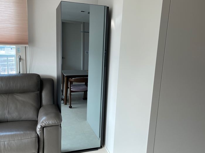 삼성 에어드레서 미러는 크리스털 무색투명한 전신 거울로 되어있어서 거실에 놓기에 안성맞춤 같습니다 하지만 삼성 제품도 크기가 애매하긴 마찬가지입니다 누구나 농 옆이나 방안 거실에 놓아도 크기가 맞지 않아 빌트인 하기에는 언발란스한데 그래도 거실에서 사용을 하면 전신 거울로도 사용하기 때문에 유용한 편인 거 같습니다