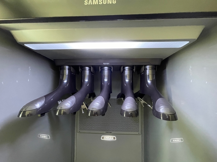 삼성 제품과 LG제품은 문을 오픈하자마자 구동 방식부터 갈리게 되는데요 드레서는 제트 에어를 불어넣어 먼지를 털어내고 살균 작용 및 건조를 해줍니다 장점은 에어로 먼지를 털어내기 때문에 소음이 무소음에 가깝고 밤이든 새벽이든 언제나 가능하다는 점입니다