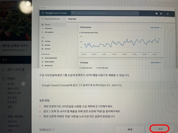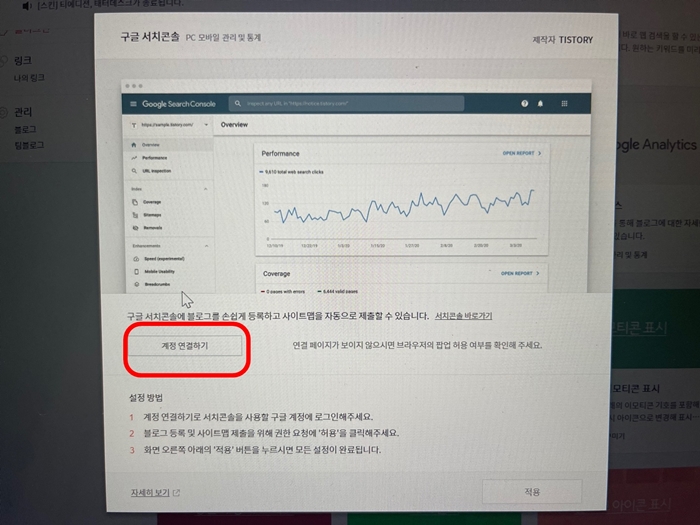 T스토리 구글 서치콘솔을 연결하면 유입 검색어와 유입량을 확인할 수 있는 정보를 얻고 다른 블로그를 따라 했지만 구글 페이지가 업데이트하는 바람에 최신 버전이 없더군요 찾다 찾다 보니 티스토리 자체에 연결하는 방법이 있더군요 간단하게 연결하는 방법 소개해 드려 보도록 하겠습니다