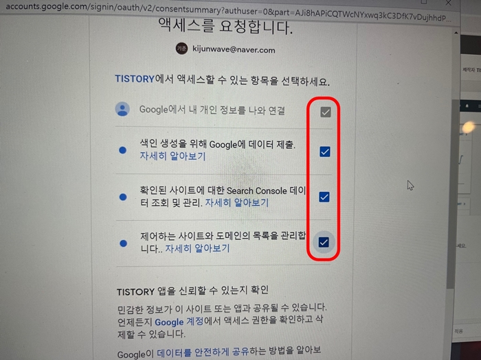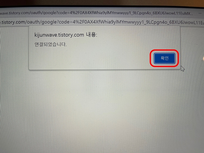 구글 콘솔 연결하기를 누르면 작은 창 하나가 띄워지는데요