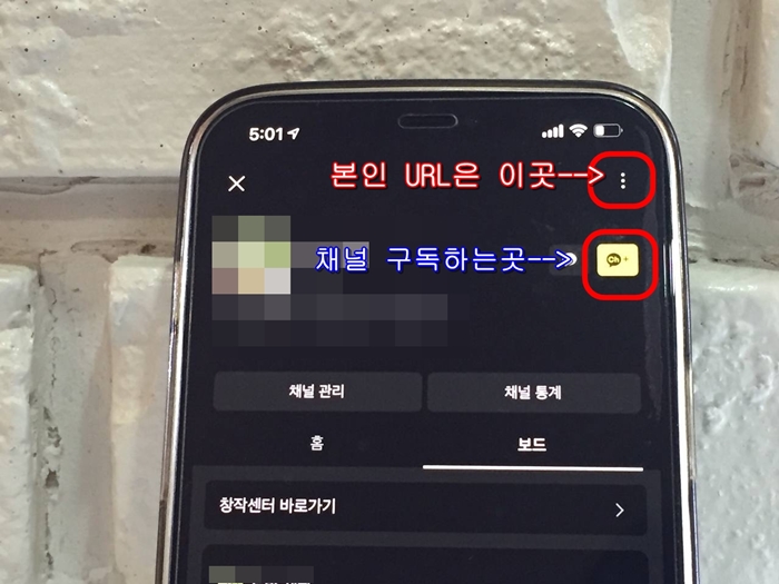 그럼... 보이시죠 본인 채널 URL이 여기 있습니다 복사하셔서 오픈 방에서 사용하시면 되시고 품앗이를 해야 하는데 채널을 누르시면 구독이 되시는 겁니다 오픈 방 하나를 잡고 지긋이 하다 보면 감이 잡히게 되는데 각자의 방 룰에 따라 차근차근하시면 됩니다