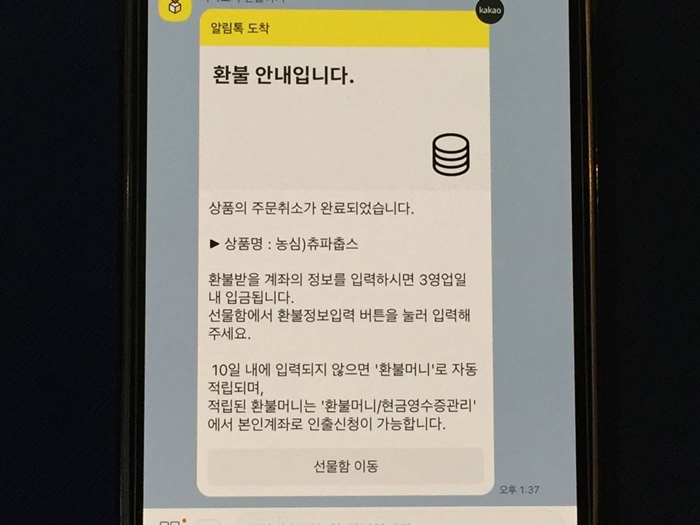 카카오톡 받은 선물 환불 방법