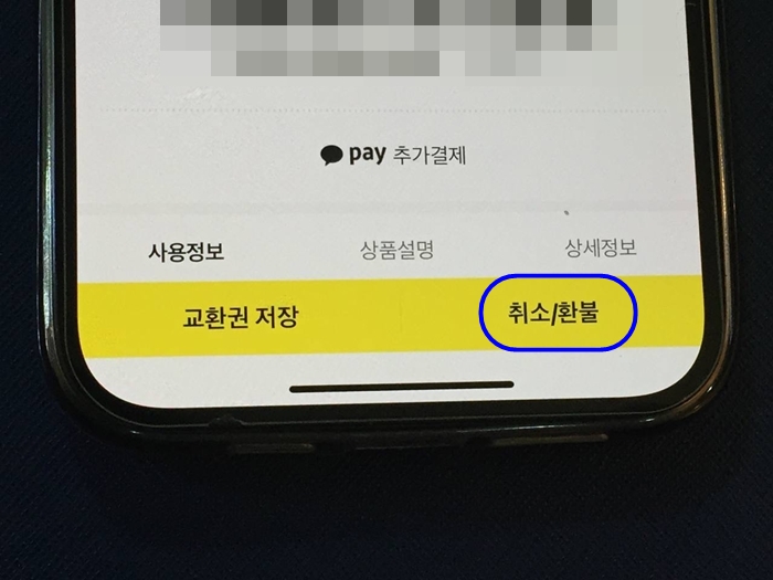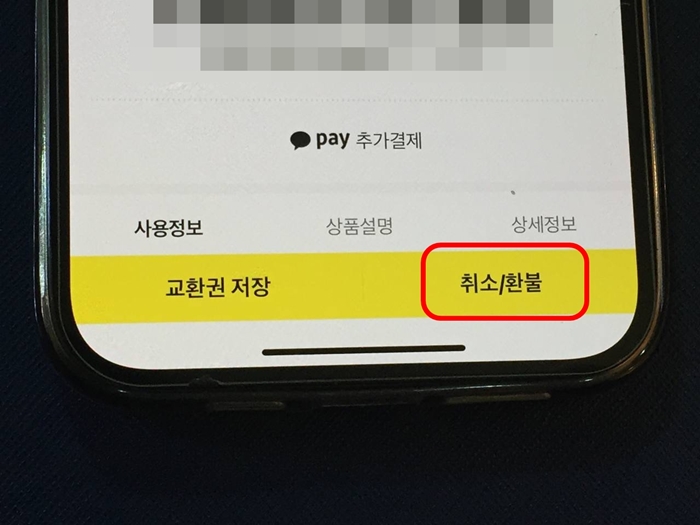 오른쪽 하단에 취소 환불 터치할 부분이 보일 겁니다 터치를 해주세요