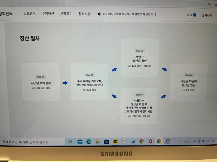 제일 중요하고 민감한 부분이죠 수익금은 언제 들어올까요?라는 질문들이 많으실 거라는 생각이 듭니다 저는 초반 100명 친구 만들다 벌써 지쳐서 거의 기대도 하질 않는데요 매달 1일부터 말일까지 수익 집계를 내고 수익 내역을 카카오톡 창작센터 알림으로 안내를 줍니다 그리고 정산금을 확인할 수 있도록 25일에서 다음 달 5일까지 확인이 가능하며 매달 15일에 정산금이 지정된 계좌입금이 되는 구조입니다