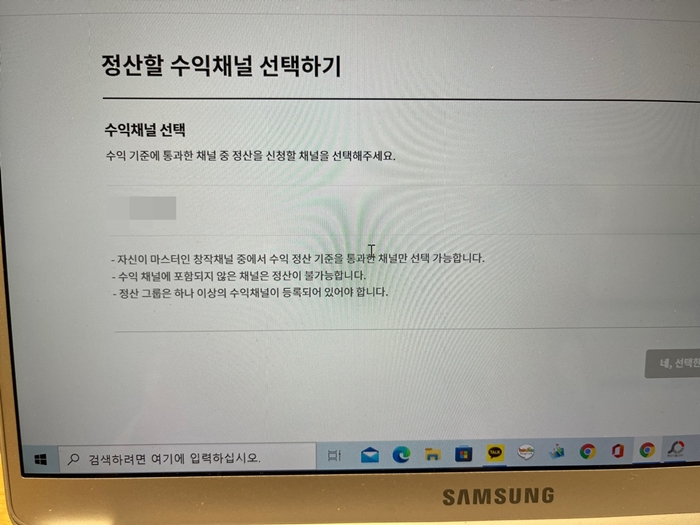 그런 다음 채널 조건에 충족되어 있는 정산 그룹을 만들어야 하는데 친구 100명 만들기가 너무 힘들어서 저는 하나만 만들어놓은 상태입니다 여러 개 만들어 놓으면 수익이 더 날 수 있는 구조입니다